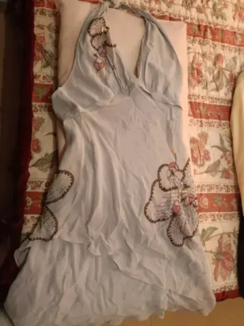 Vestido BCBG Maxazraia. Vestido corte asimétrico con detalles bordados al costado en color café super cómodo