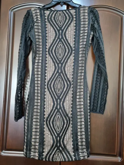 Vestido BCBGMAXAZRIA. Vestido negro de manga larga, ajustable al cuerpo talla xch puede ajustarse a talla chica por el tipo de tela