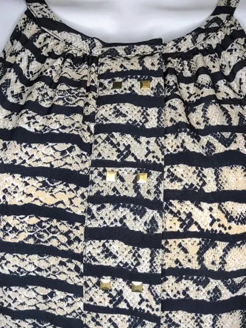 Vestido beige con negry. Lindo vestido, beige y líneas negras. Nuevo, talla L.Sin mangas, broche y botones al frente con aplicación de cuadritos, cierre a un costado, la falda es tableada del frente y de atrás.Axila: 52 cmLargo: 94 cm