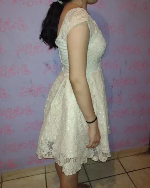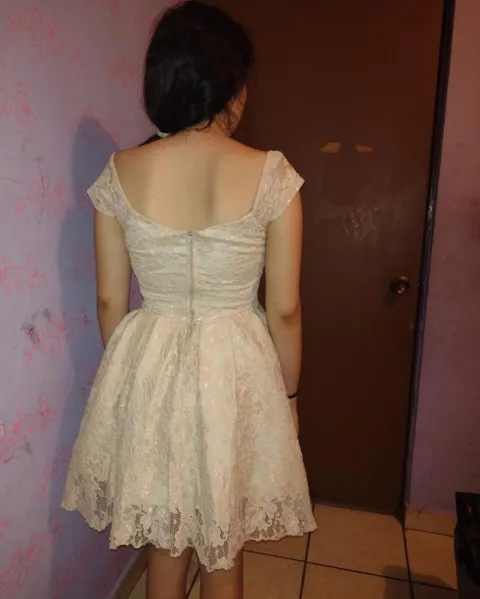 Vestido beige de encaje que estira y ajusta al cuerpo.excelente estado .orma bello.