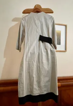 Vestido beige fashion - canadiense. ¿Quieres llamar la atención de manera elegante? ¡Este es el vestido! Un implacable vestido largo, beige con detalles negros (una cinta elástica de lado y en la parte inferior). Manga 3/4 y cuello redondo. ¡Atrévete! Doy regalito con el envío. 😉