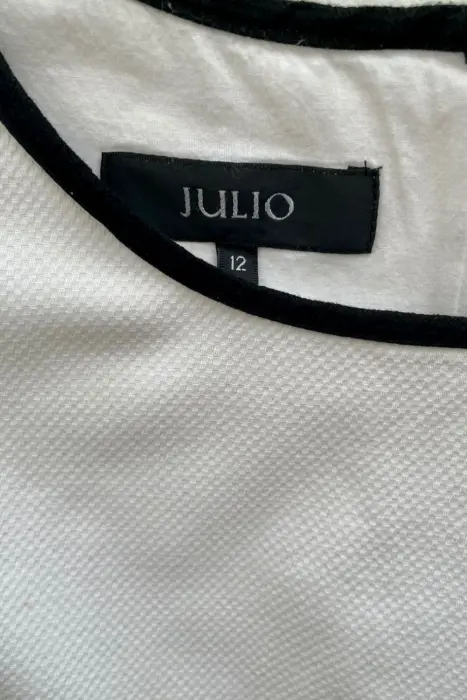Vestido blanco. Vestido formal silueta, blanco con detalles negros, talla 12, marca Julio en excelentes condiciones y muy bonito.