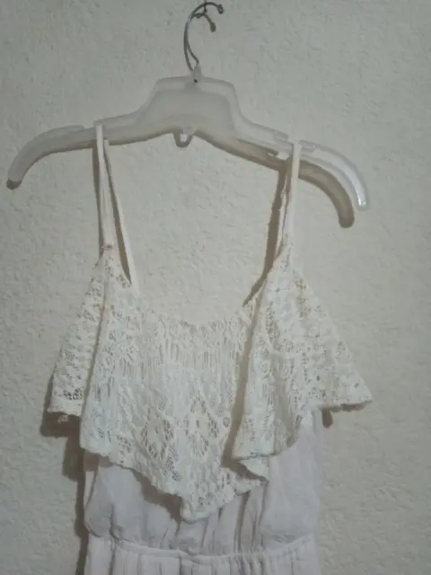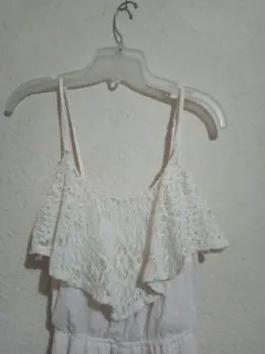 Vestido blanco de gaza y con olanes de encaje , asimétrico ( más largo por atrás ) , súper fresco.