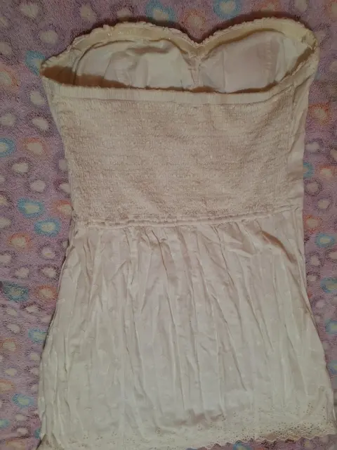 Vestido blanco bordado. Sexy vestido blanco bordado, straple, tiene bolsas laterales. En la parte de atrás tiene encaje que hace que se pueda ajustar a tu figura. En la parte del busto tiene goma para que se adhiera a tu piel y no se te baje. Tiene forro para evitar que se transparente