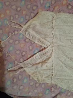 Hermoso, fresco y sexy vestido blanco, con tirantes en los hombros y en el cuello. Tiene detalles en el busto que hace que se vea muy lindo. Tiene forro para evitar que se transparente. De la espalda tiene resorte que hace que se amolde a tu cuerpo. Tiene algo de vuelo.