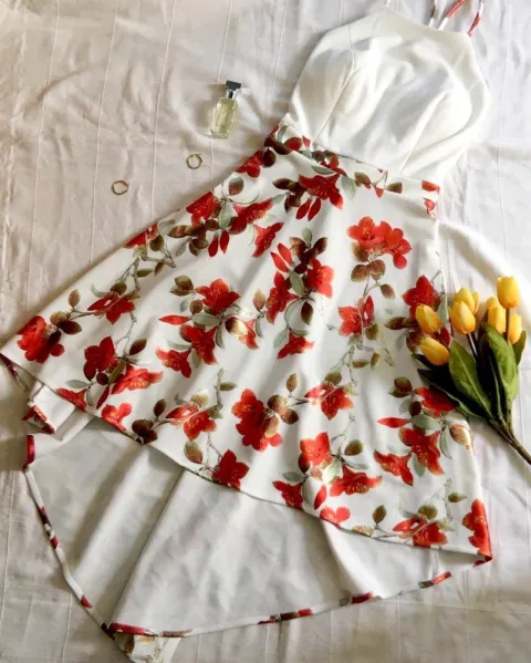 Vestido blanco con flores. - En la escalada los tirantes son cruzados - No está roto- Sin detalles