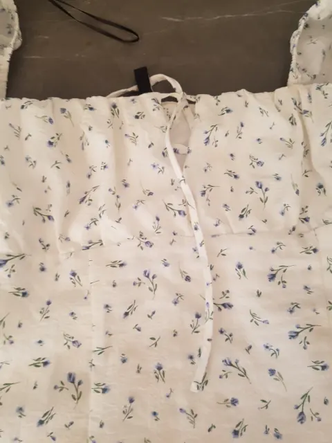 Vestido corto usado sólo una vez, talla M, H&M, manga larga, blanco con estampado floral, hermoso!