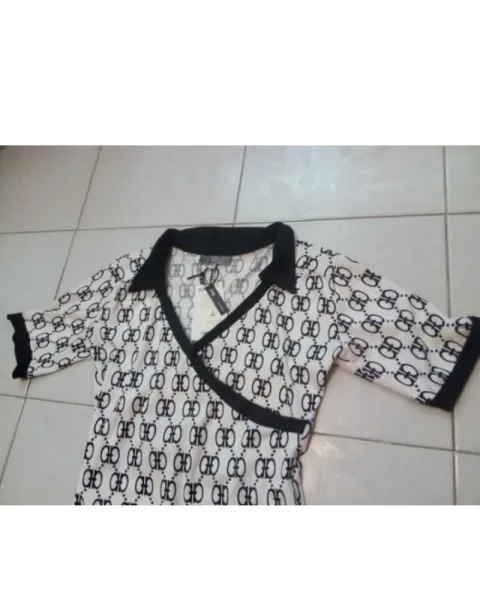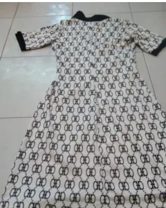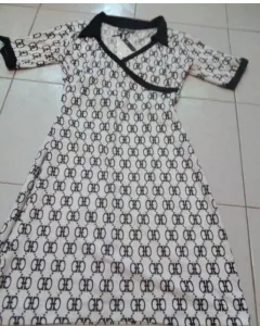 Vestido blanco con negro con escote en "V" es una prenda muy cómoda, corto hasta las rodillas, se amolda perfectamente al cuerpo.