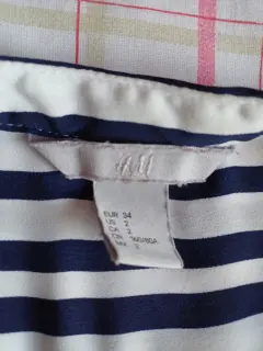 Vestido blanco con rayas azules, recto, casual. Vestido blanco con rayas azul marino, recto, largo a la rodilla, o mas corto. Marca H@M talla 2