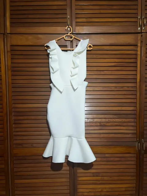 Vestido blanco corte sirena. Vestido nuevo con etiqueta color blanco y planes ,tela tipo neopreno gruesa que comprime y forma la figura y marca cintura y curvas .Largo 95 cms y axila a axila 45 ,la tela estira bastante bien.
