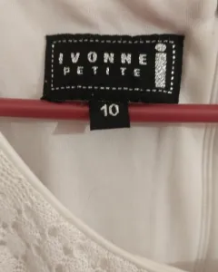 Vestido blanco Ivonne. Vestido blanco, marca Ivonne con olanes en el hombro, talla 10. Tiene como detalle una mancha en la parte delantera.