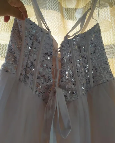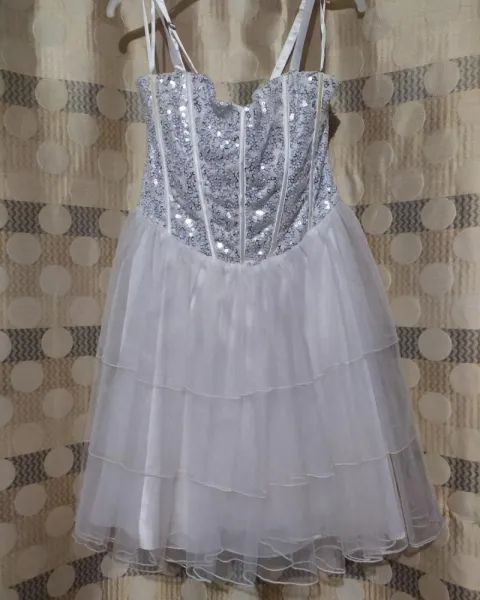 Vestido blanco lentejuelas Liz Minelli. Precioso vestido blanco Marca Liz Minelli talla grande, puesto en una ocasión, cuenta con cierre y broche en la parte de atras, cuenta con forro.