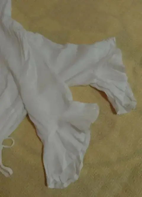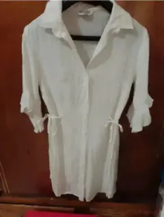 Vestido blanco ligero. Fresco vestido de color blanco, ligero para temporadas de calor. Es de botones y trae unas cintillas delgadas para amarrarse a los lados y resaltar tu figura. Las mangas no son rectas tienen vuelo en las orillas. Es corto