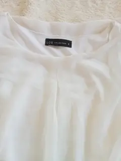 Vestido blanco Lob. Vestido blanco , marca Lob, talla 2, de manga corta, con forro, transparencia como segunda tela, chaquira en la parte inferior y resorte escondido en la cintura para afinar silueta. Amolda al cuerpo.