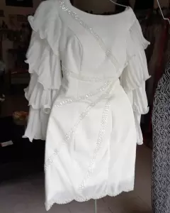 Vestido blanco para boda civil. Hermoso vestido blanco para boda civil o evento especial!!Talla chica, bordado en orilla de vestidocon chaquira perla, descubierto en espalda, mangas plizadas en 3 calidad, más que hermoso!!
