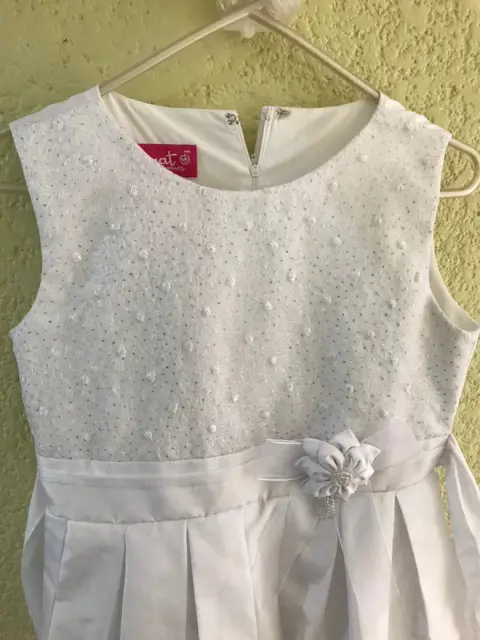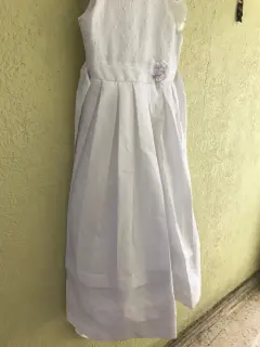 Vestido blanco para niña. Vestido blanco para niña talla 12 con detalles en plata al frente, flor en cintura, solo se usó unas horas para primera comunión
