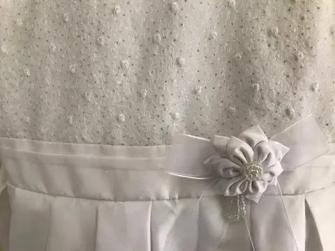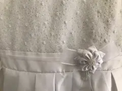 Vestido blanco para niña talla 12 con detalles en plata al frente, flor en cintura, solo se usó unas horas para primera comunión