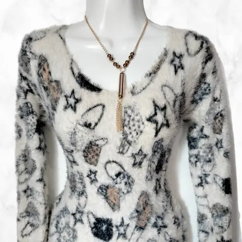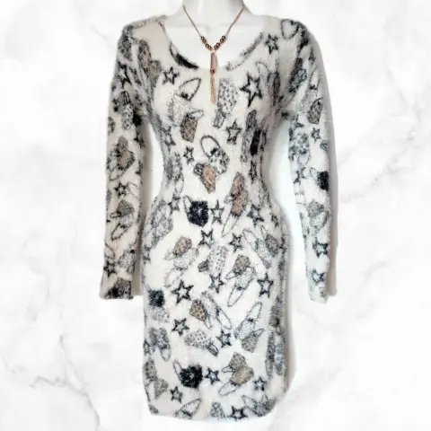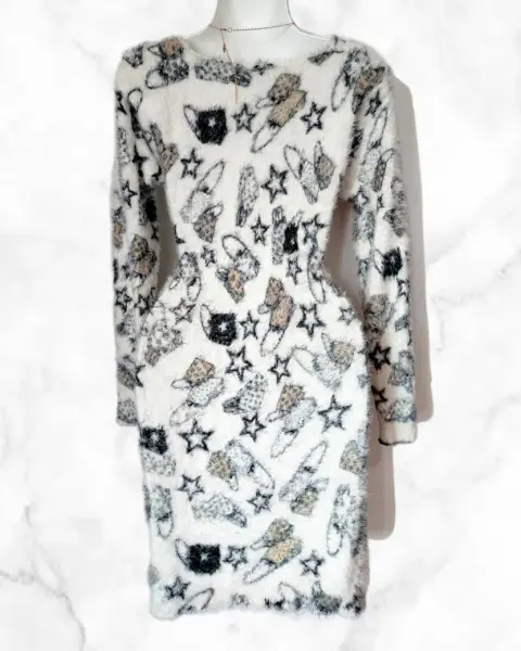 Vestido manga larga, largo y peludito, (pelo super suave) tela stretchUnitalla; queda a talla M, L, XL, 1XLMedidas;87 cm largo45 cm axi-axi60 cm de manga
