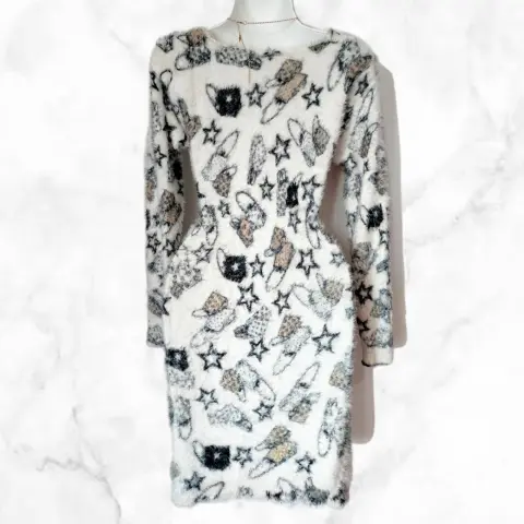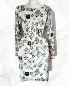 Vestido Blanco Peludo. Vestido manga larga, largo y peludito, (pelo super suave) tela stretchUnitalla; queda a talla M, L, XL, 1XLMedidas;87 cm largo45 cm axi-axi60 cm de manga