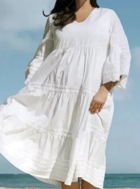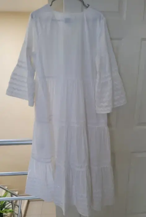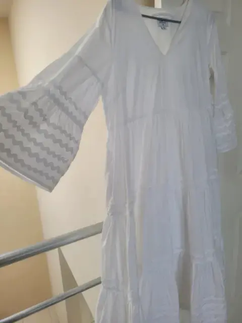 Bonito vestido en color blanco, en paneles tela popelin Talla M Medidas: De axila axila 54Hombro 42 Largo 120