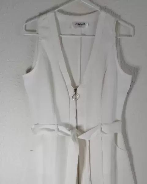 Vestido blanco semiformal. Vestido semi casualCon zipper por el frente y cinturón Vestido corto sin mangasPara toda ocasión