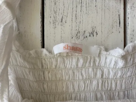 Vestido blanco Shasa. Vestido ligero blanco, talla CHTirantes ajustables, tiene resorte en la espalda para un mejor ajuste, largo abajo de la rodilla, al frente se un nudo al frente para ajustar.No tiene detalles