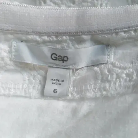 Vestido blanco strapless con bolsas GAP. Vestido strapless blanco GAP, muy romántico y femeninoTalla 6Características:-Cierre lateral invisible-Tiene bolsas-Tiene forro-Cinta antiadherente por dentro para que no se te bajeMedidas tomadas por un solo lado:-Largo 72 CM-Axila-axila 37 CM-Cintura 35 CM