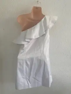 Vestido blanco un solo hombro talla S(36). Vestido blanco un solo hombro con volados en el escote y hombro, es suelto y súper fresco para la temporada primavera verano. Es talla S (36)