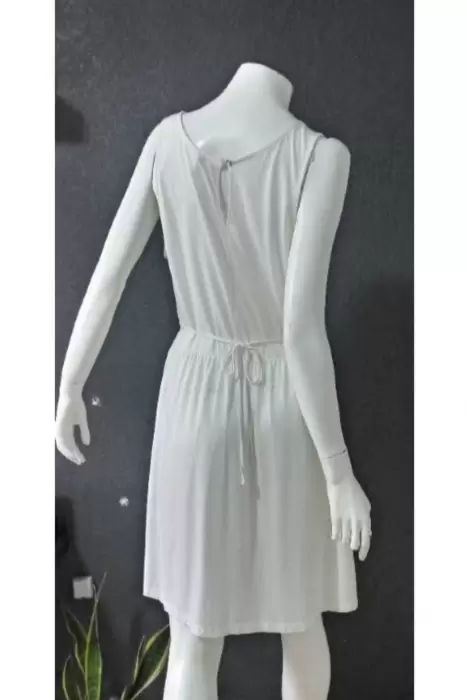 Vestido casual blanco con cintas de amarre en cintura, Tela ligera, talla L