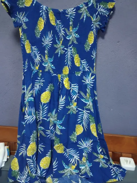 Vestido blue. Vestido arriba de las rodillasEs a los hombros, estira en la parte del pecho pero no mucho Tela fresca