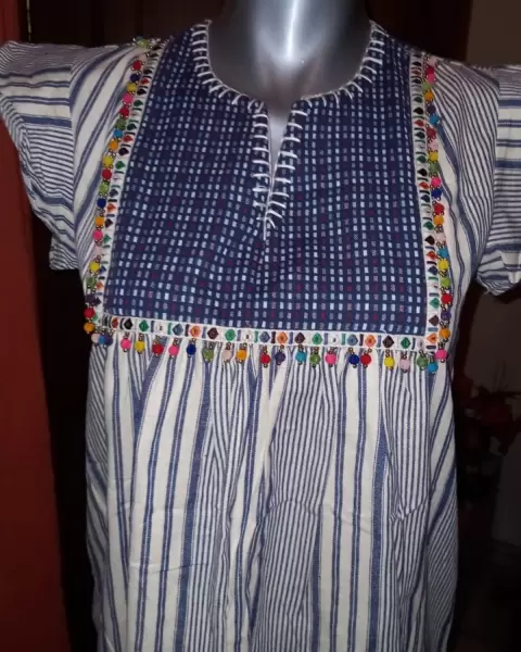 Vestido boho.. Lindo vestido a rayas, con bordado y pequeños pompones, completamente nuevo.