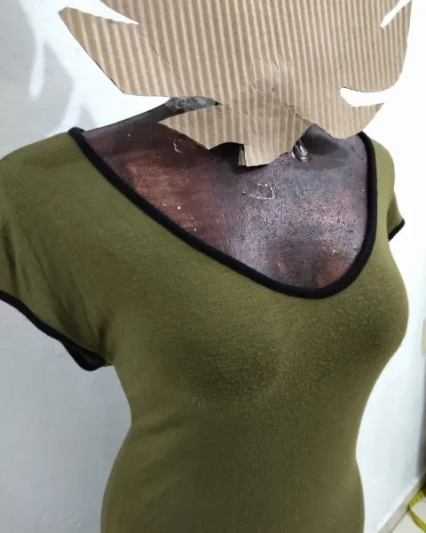 Vestido super cómodo de algodón en color verde militar con manguitas sueltas. El vestido queda ajustado, se ve super. También queda bien a M.