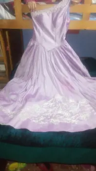 Vestido bonito. Vestido de 15 años color lila de un hombro