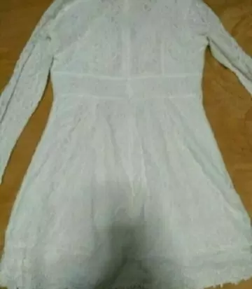Hermoso vestido manga larga, la tela es tipo encaje, bordado de la parte del frente, es color hueso
