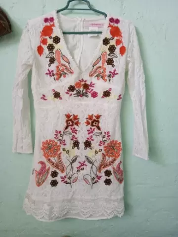 🌹Vestido Bordado Cklass 🌷. Hermoso vestido manga larga, la tela es tipo encaje, bordado de la parte del frente, es color hueso