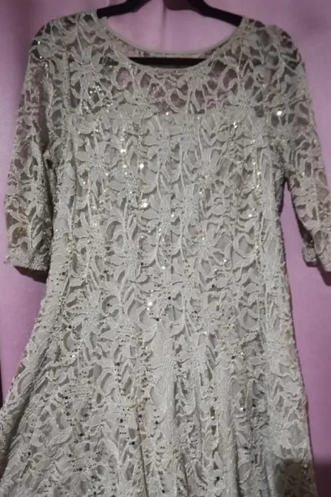 Es un vestido muy femenino y elegante, se uso una sola vez, brilla bastante.