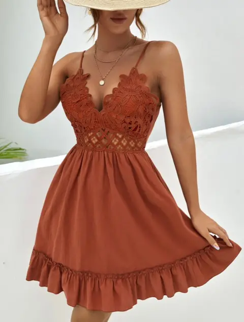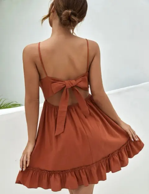 Vestido café Shein. Vestido café talla L en la ultima foto viene la descripción de tallaNingún detalle