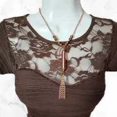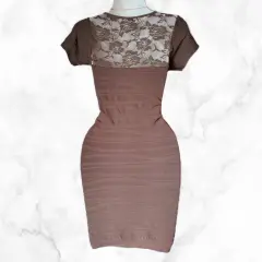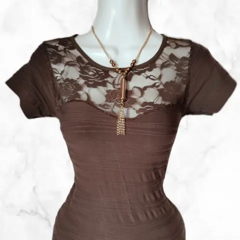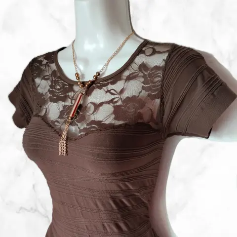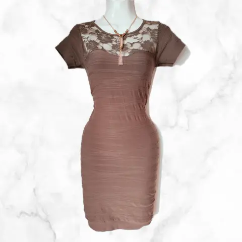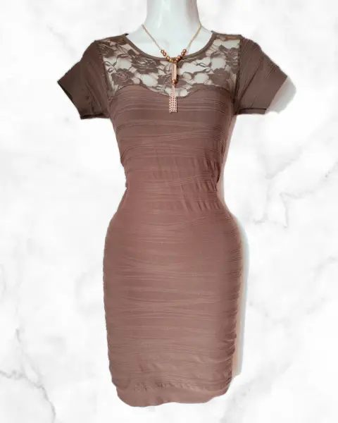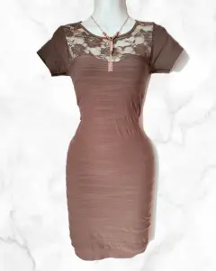 Vestido café pegadito con transparenciaTela stretchUnitalla: queda a XS, S, M Medidas:80 cm de largo 35 cm axi-axi (sin estirar)