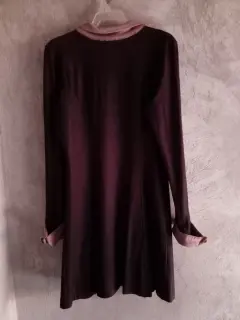 Bello vestido tipo colegiala ,ajusta perfecto de la cintura y la tela es tipo strech ,es de manga larga y tiene botones cafés que dan un mejor toque colegial.