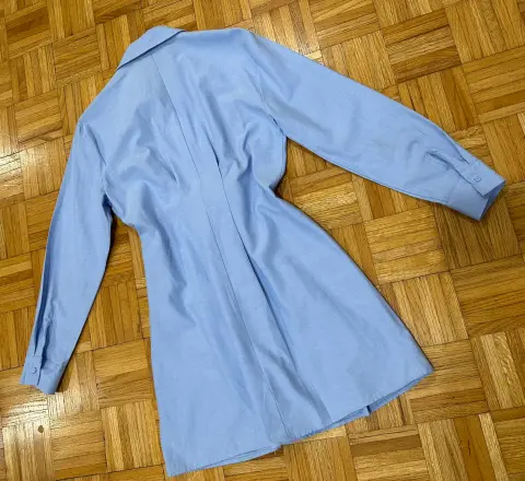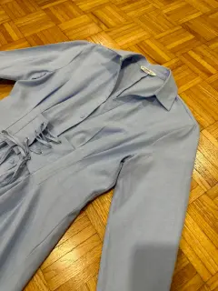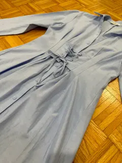 Vestido tipo camisa con fajilla cruzada por delante, color azul cielo, es mini vestido, la falda es tipo ACompletamente nuevo