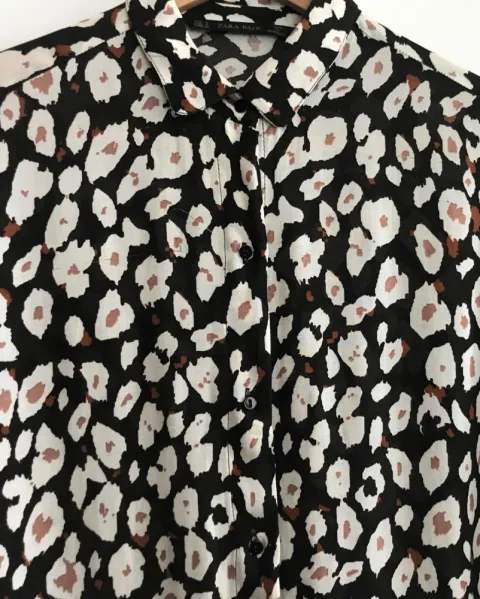 Ligero y cómodo, estampado animal print “Zara”. Es talla S pero viene amplio, queda a talla M. Mide de axila a axila 50cm, largo adelante 93cm, largo atrás 1.03 cm. Tiene un hilito jalado