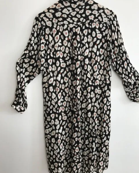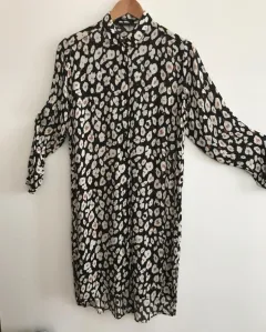 VESTIDO CAMISERO “ANIMAL PRINT”. Ligero y cómodo, estampado animal print “Zara”. Es talla S pero viene amplio, queda a talla M. Mide de axila a axila 50cm, largo adelante 93cm, largo atrás 1.03 cm. Tiene un hilito jalado