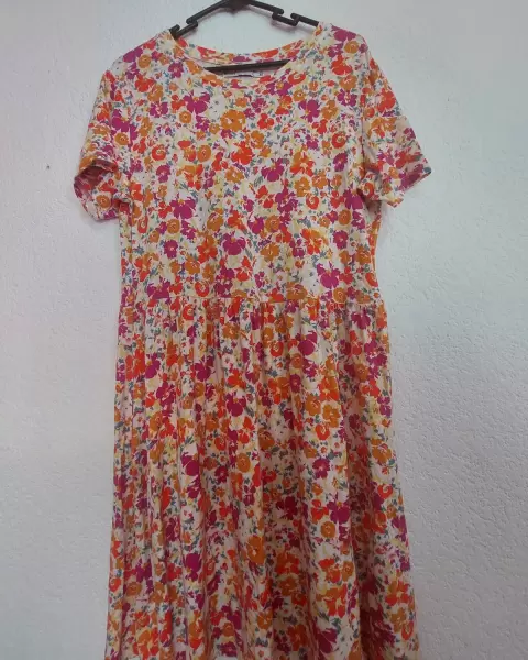Bonito vestido tela tipo playera, fresco y súper lindo, tiene volado 💛🧡✨