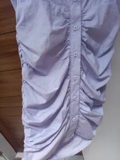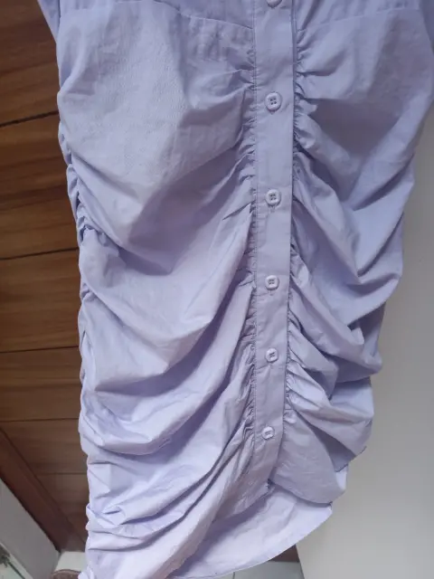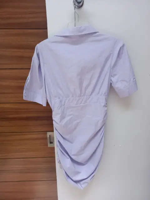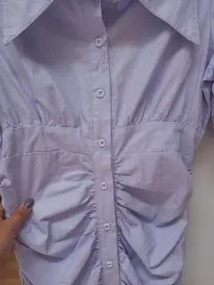 Vestido camisero lila. Muy bonito diseño, botones al frente, fruncido a los costados y al frente bonito cuello al frente totalmente nuevo marcado con talla L pero reducido a M... mode de axila a axila 47cm cintura 38xm largo desde hombro 82cm de atrás mide 97cm cadera 43cm