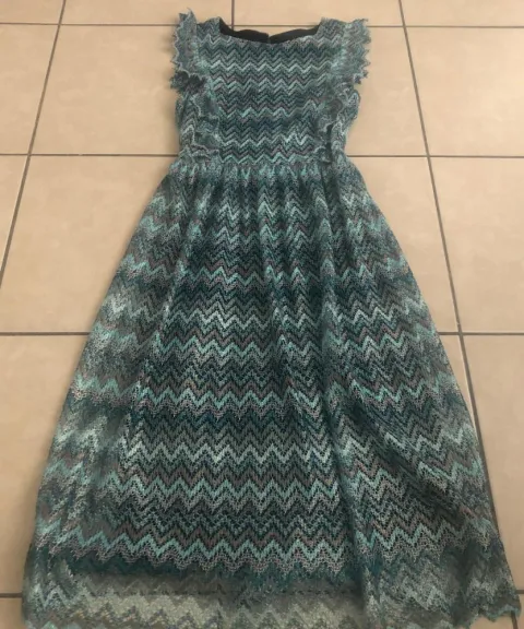 Vestido Casual. Vestido casual Ivonne, talla 8 Petite, fresco tonalidades verdes y metálicos, midi