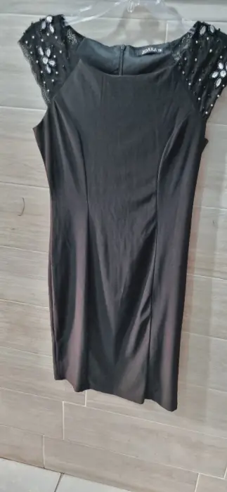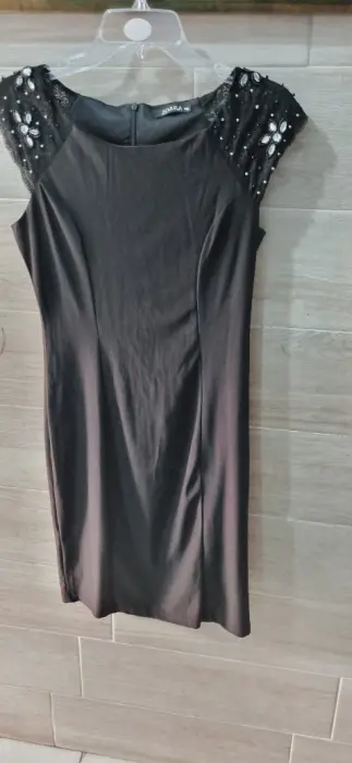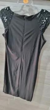 Vestido casual. Vestido negro con pedreria en hombros ain manga, con forro. Excelentes condiciones