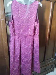 Vestido casual. Vestido casual, estampado en tonos rosas, sin manga, talla S, marca Mossimo, doble tela, de poco vuelo, ligero, más largo de atrás.