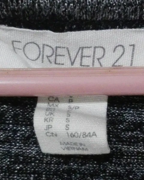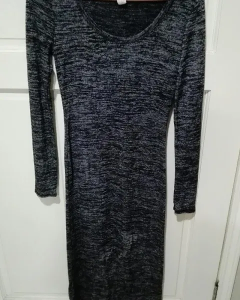 Vestido casual largo talla en US-S Mx-S/P. Es negro jaspiado o atigerado en gris.
