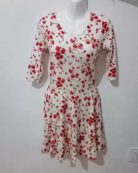 Vestido corto floreadoLa tela se estiraCuello redondoTienen adorno en la espalda te queda como un triangulito.Talla: GMedidas: *De axila a axila 39 cm*Largo desde los hombros 87 cmUsado en buen estadoCupón: JanMoPBn0H