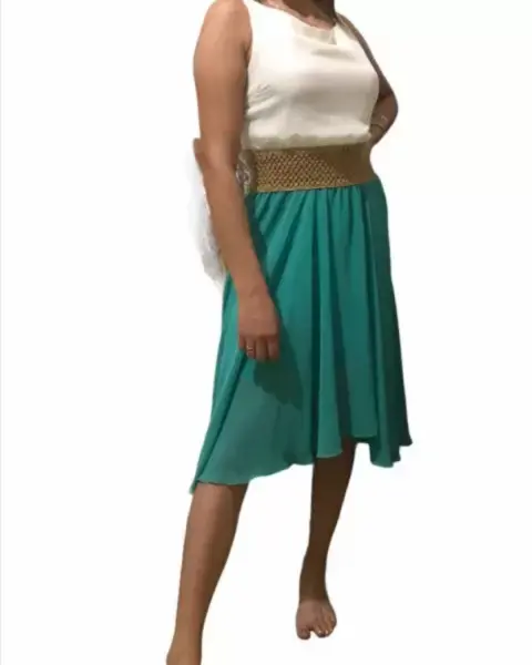Vestido casual verde con beige queda a las tallas S, M, L se ajusta con la cinta del moño No tiene detalles